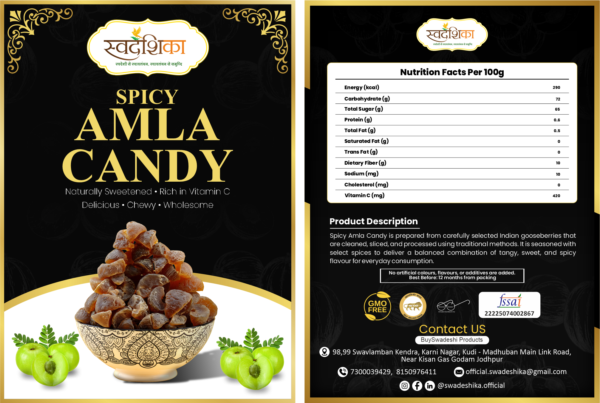 Tangy-sweet-spicy amla candy made from carefully selected Indian gooseberries, rich in Vitamin C and perfect for daily snacking.